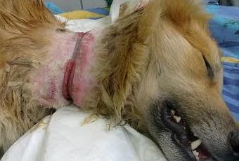 ¡¡¡Dios...por que me has abandonado!!!! eso tuvo que pensar este pobre animal cuando trataban de ahorcarle....por suerte la cuerda se rompió y pudo escapar de una muerte segura....con la cuerda incrustada en su cuello y una pata rota ha estado un mes y pico huyendo de todo tipo de bicho de dos patas solo se acercaba (bueno se dejaba ver) a Isa (de la prote) cuando le ponía comida....hoy con la gran ayuda de un vecino hemos conseguido cogerle ,sedarle y llevarlo al veterinario...allí roberto le ha realizado las primeras curas y primeras valoraciones....la patita rota a la altura del tobillo ,una fractura muy antigua que ha conseguido que su pata trasera derecha se haya quedado sin musculatura totalmente,solo tiene hueso y bueno las secuelas del cuello creo que quedan claras,además de las psicológicas,pánico al ser humano.....como siempre pedimos adopción o acogida...al ser un caso tan extremo,buscamos una persona lo primero con experiencia en casos dificiles,con corazón y paciencia......para ayudarnos en este caso [email protected] ...es muy urgente...creo que las fotos lo dicen todo....Mas fotos en