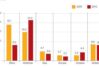 El cuadro de arriba está sacado de esta publicación del Instituto Igarapé, una de las instituciones mundiales mas prestigiosas en el estudio de la violencia. La tasa de homicidios europea está a enorme distancia del resto del planeta, pero la española está aún muy por debajo de la media europea, hasta menos de la mitad.
