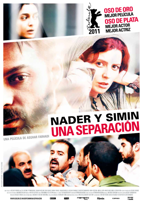 Buen ejemplo de lo que poco que hace falta para lograr una película notable: buenas actuaciones y buen guión. Estrenada en octubre y multipremiada película iraní del director Asghar Farhadi en la que se nos cuenta un intento de divorcio entre una pareja afincada en Irán. Farhadi cuestiona sin flaquear el funcionamiento de las leyes de su país y el alcance de las creencias religiosas a través de una historia entretenida y llena de matices.