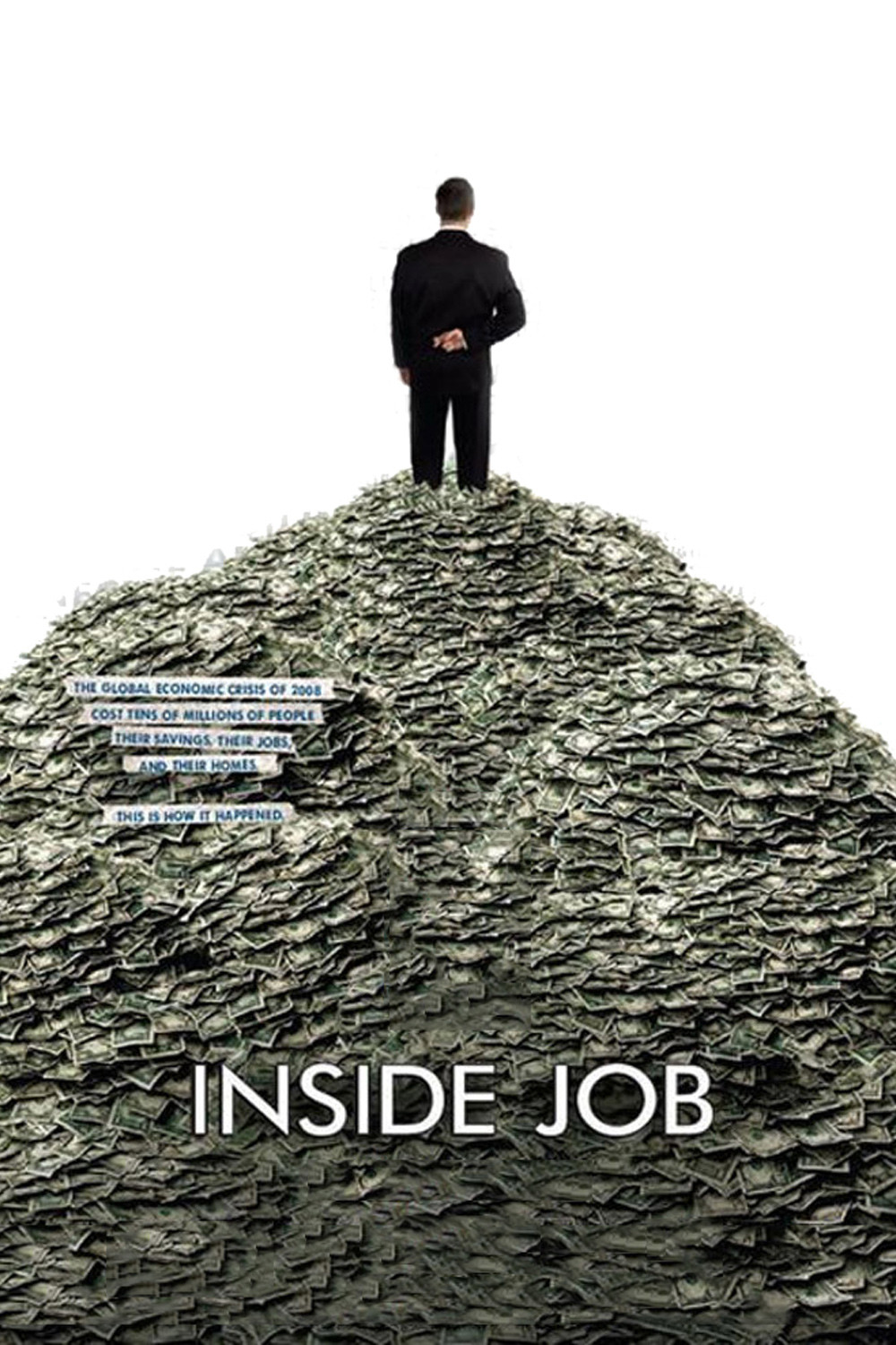 Gran documental sobre la crisis. Michael Moore se queda a la altura de parvulitos al lado del trabajo realizado por Charles Ferguson. Si alguien todavía alberga dudas de por qué, cómo y desde cuando estamos en crisis y si alguna vez saldremos, debería anotarse como propósito de nuevo año el verlo. Tras desmontar en menos de una hora todo el sistema judicial, económico y financiero de Estados Unidos, la voz de Matt Damon (es el narrador) pasa a explicar cómo esto afecta al resto del mundo.