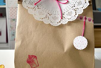 Éste es el regalo... o al menos lo que lo envuelve (el objeto de dentro es algo útil que la persona que lo recibe le va a dar mucho uso), pero yo quiero enseñaros el paquete... un lazo por aquí, un sello por allá, una blonda, un poquito de washi tape, papel craft y "voilà"... un regalo monísimo!!!