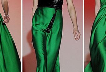 De la extraña mezcla entre el barroco y el rock que nos presentó Hannibal Laguna me quedo con las salidas en verde esmeralda y rojo rubí. Me encantaba la caída y el movimiento de la tela.