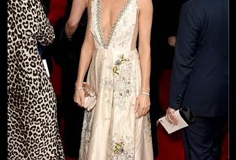 Sienna Miller en Miu Miu. Un look muy bueno solo que el escote en este caso era demasiado largo y los zapatos no fueron los más adecuados. Unos stiletos hubieran sido los más indicados.