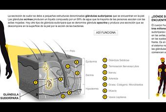 Para muchas personas el sudor es algo desagradable por el olor que presenta pero en realidad no saben de la importancia que éste tiene, transpirar es necesario ya que ayuda a enfriar el cuerpo de manera natural cuando se tiene calor. Es por ello que muchas personas sudan cuando tienen fiebre, miedo o realizan algún tipo de actividad física.En la siguiente infografía podrás encontrar más información sobre lo que debes saber sobre el sudor.