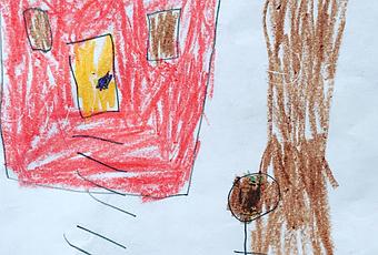Cada vez que tiene lápices de colores y papel a la mano, Coco aprovecha para dar rienda suelta a su imaginación. Le ha dado por dibujar casas, paisajes y algunos miembros de la familia. Supongo que son esos con los que más se identifica. Este fue su dibujo más reciente.