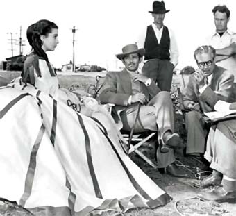 Vivien Leigh, Clark Gable y Victor Fleming durante el rodaje de "Lo que el viento se llevó"