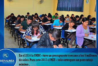 Comisión Organizadora que preside Carlos Eduardo Villanueva alcanzó solo un 36.3% de capacidad de gasto durante el año 2016Al margen que la Universidad Nacional de Cañete (UNDC) - no haya cumplido con varios de los indicadores básicos de calidad, entre ellos el de la infraestructura y equipamiento adecuado y la disponibilidad del 25% de docentes a tiempo completo -dicha casa de estudios tendrá un considerable recorte en su presupuesto para el año 2017.