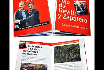 Hasta el momento, la precampaña únicamente se servía de armas convencionales (vallas publicitarias), pero el Partido Popular ha decidido sacar los tanques a la calle cargados de misiles. 50 páginas, ni más ni menos, buzoneadas en formato mini-libro, a todo color y con estética PSOE. Tal es así que no se echa de menos el logotipo del puño y la rosa y, además, lo han subtitulado "El libro rojo de Revilla y Zapatero".