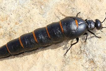 Estos insectos sorprenden por el tamaño de su hinchado abdomen y su coloración, negros con bandas anaranjadas, que han ocasionado muchas veces que la gente piense que son “gusanos” (un término demasiado general). En realidad, son coleópteros que se alimentan de materia vegetal, y que tienen una característica muy curiosa: a través de las articulaciones de sus patas segregan cantaridina, un compuesto químico venenoso que utilizan para defenderse. Por la zona vimos dos ejemplares en menos de diez metros cuadrados. Sorprende que, a pesar de su aspecto, tan regordegtas, sean capaces de desplazarse a semejante velocidad por entre los arbustos y las hierbas.