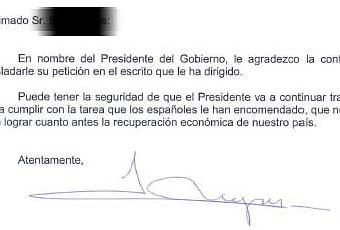 En primer lugar esta respuesta deja claro que SÍ que leyeron la carta, no el presidente, por supuesto, (o quizá sí, quién sabe), pero desde luego sí algun responsable, quizá el señor Jorge Moragas director del gabinete de la Presidencia del Gobierno y que firma la contestación.