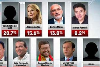 En estos momentos parece una competencia abierta. Una encuesta publicada la semana pasada puso al MAS (independientemente de quien sea el candidato seleccionado) en primer lugar de la intención de voto con un 20,7%, seguido por Jeanine Áñez, la autoproclamada presidenta con un 15,6%. En tercer lugar aparece el expresidente Carlos Mesa, quien quedó segundo en las pasadas elecciones de octubre con un 13,8 % de apoyo. Completan la lista de los principales aspirantes Marco Pumari (8,2%), del Comité Cívico Potosinista; Chi Hyun Chung (8,1%), un pastor evangélico nacido en Corea del Sur pero nacionalizado boliviano que terminó en tercer lugar en el proceso electoral anterior; y Luis Fernando Camacho (6,9%), el líder ultraconservador del Comité Cívico de Santa Cruz que encabezó las protestas contra el expresidente Evo Morales y metió la biblia al Palacio Quemado. Este sondeo fue hecho antes que Luis Fernando Camacho y Marcos Pumari manifestaran su intención de ir en la misma fórmula a la contienda electoral, lo que modificaría este contexto.