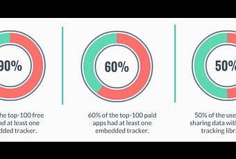 Aproximadamente el 90% de las aplicaciones gratuitas superiores y el 60% de las aplicaciones pagadas superiores en Google Play Store tenían al menos un rastradeor incorporado.