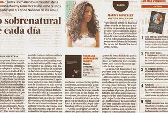 " Lo sobrenatural de cada día" es el título la reseña sobre Todas las mañanas un muerto, publicada este fin de semana en la edición impresa de la revista Ñ. Comparto con los lectores de La Aquateca un fragmento de esta hermosa nota escrita por María José Eyras, a quien agradezco profundamente los elogios sobre el libro.