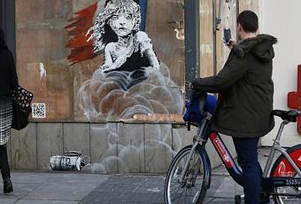 Banksy siempre atento al calor de lo contemporáneo. Pero la velocidad de estos días también lo corre: a pocas horas de descubrirse fue cubierto de una serie de tablas de madera. Quedan las fotografías para honrar sus intenciones.
