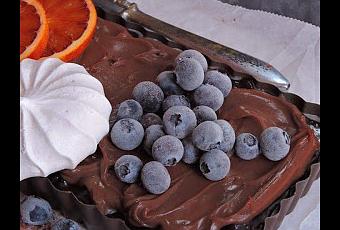 Para decorar le he añadido una generosa cantidad de ganache de chocolate con leche y mucha fruta fresca y congelada.