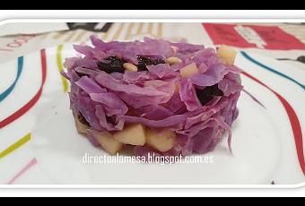 PREPARACIÓN:Partimos la lombarda y la cortamos en juliana (no demasiado fina) evitando los trozos más duros del tronco.