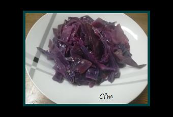-Una lombarda limpia y cortada-2 patatas peladas, troceadas y limpias-Agua-Aceite de oliva-Vinagre de Módena-Sal