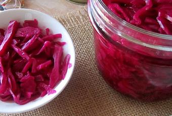 Mientras tanto se pica la col en tiras finitas y se coloca en un cuenco de cristal o cerámica.Cuando el líquido esté listo se vierte sobre la col. Dejamos reposar unos minutos y lo meneamos un poco para que la col se vaya asentando. Se guarda en la nevera y dejamos pasar una hora antes de consumirlo.