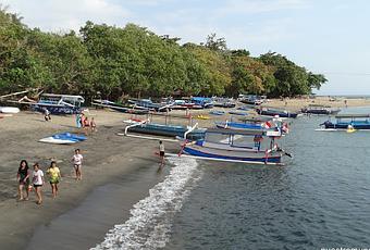 La playa de Senggigi recorre toda la extensión de la bahía del mismo nombre. Queda dividida en dos por un pequeño embarcadero y una parte de ella sirve de estacionamiento en la arena de las barcas de pesca locales. Bordeada de altas palmeras, a pie de playa dos resorts dan servicio a los sedientos amantes de los baños de sol.