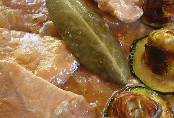 NOTA: Mejor emplear el llamado lomo de dos colores, queda más tierno. ** Si no tenemos nueces se puede utilizar avellanas o almendras. ** Las alcachofas baby son congeladas y deben hervirse primero o cocinar en microondas (seguir las instrucciones del fabricante) ** c/s= cuchara sopera