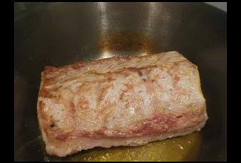 En una sartén con 2 cucharadas de aceite, doramos el lomo por todos los lados. Salpimentamos y pasamos a una cazuela.