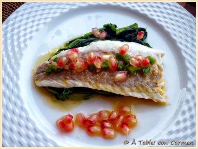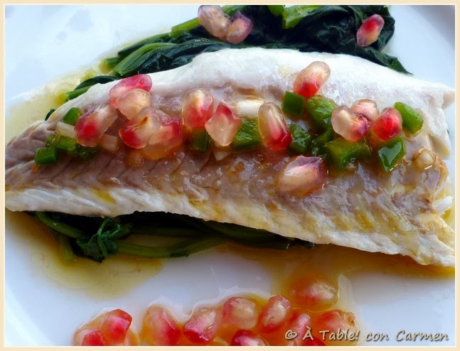 La granada no sólo le aporta un toque fresco al plato, sino que nos proporciona un contraste de texturas muy agradable. Si tenemos ocasión, acompañar con una copa de cava.