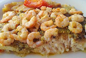 Hacemos una mezcla con ajo picado, perejil, sal, pimienta y pan rallado y colocamos sobre el lomo simulando la piel, presionamos con la mano (esto es para que se forme una costra y el pescado conserve su jugo).
