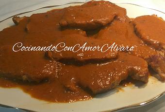 - Ponemos los filetes en rodajas en una fuente, y por encima rociamos con la salsa ya triturada.
