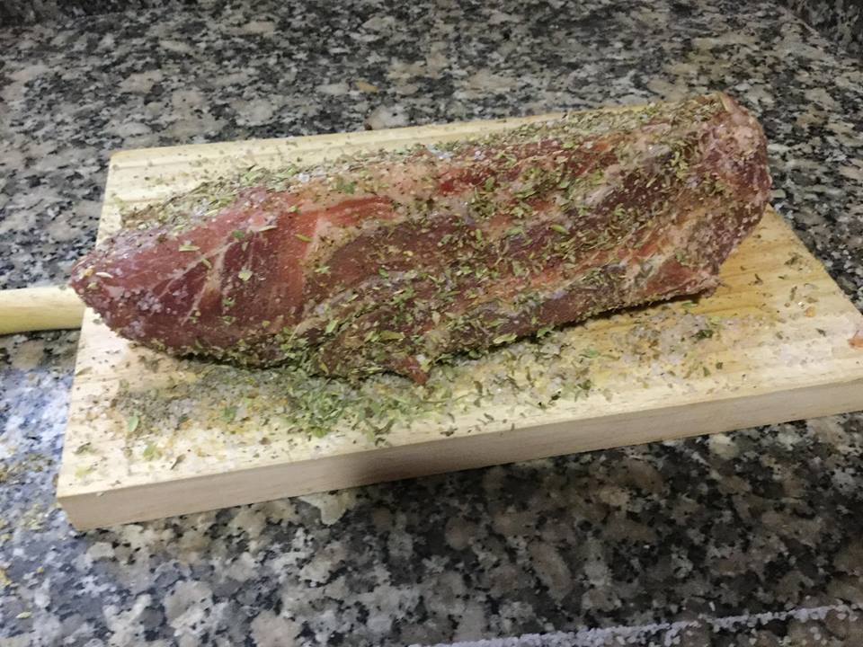 Salpimentamos y le ponemos todas las especias al lomo y envolvemos en film transparente.