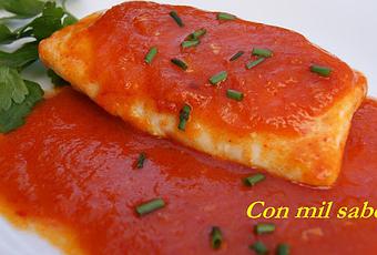 Un paquete de lomos de merluza (suelen traer 4 piezas),yo los compro sueltos, por unidades, son más grandes.Una cebolla gordita.Un pimiento rojoHojas de Laurel, sal , pimienta, aceite de oliva.Vino manzanilla ( ó algún Montilla-Moriles)