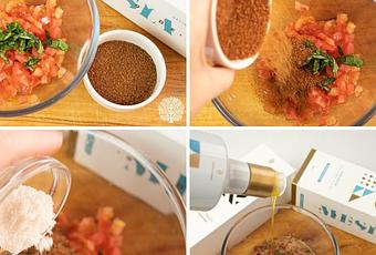 Ahora incorpora la sal y el aceite de oliva virgen extra y remueve para integrarlo en la vinagreta dulce de tomate.