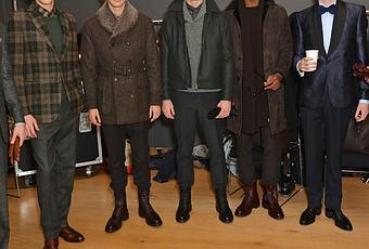 Basmajian mostró una versión más accesible de la robusta sastrería Inglesa, todavía con un hombro fuerte, una chaqueta larga y un pantalón con vueltas, pero sus tejidos de lana son más suaves al tacto, sus acabados de con probabilidades de entrar en alpaca o cachemira como el melton. "La gente dice que es una versión anglo-italiana, pero creo que eso es justo que es un estilo internacional Inglés", dijo Basmajian.