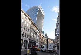 En la estación de Earl’s Court tomamos la línea verde hasta Monument, según salimos del metro ya divisamos la Torre Fenchurch 20, también denominada Walkie Talkie. Es un moderno edificio de 36 pisos, en el distrito financiero, en la City.