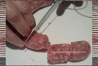 En una sartén con aceite ponemos la longaniza cortada, damos unas vueltas.