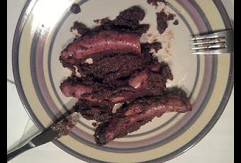 Longanizas con salsa de verduras - el color de la salsa se debe al vino dulce