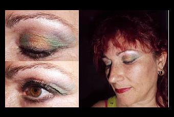 El delineado lo he hecho con una brochita plana de corte oblícuo y sombra negra.