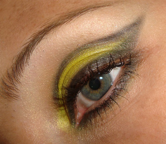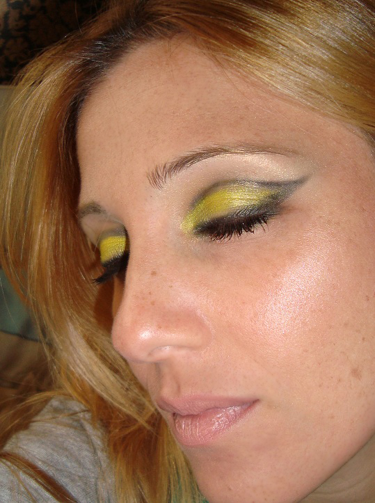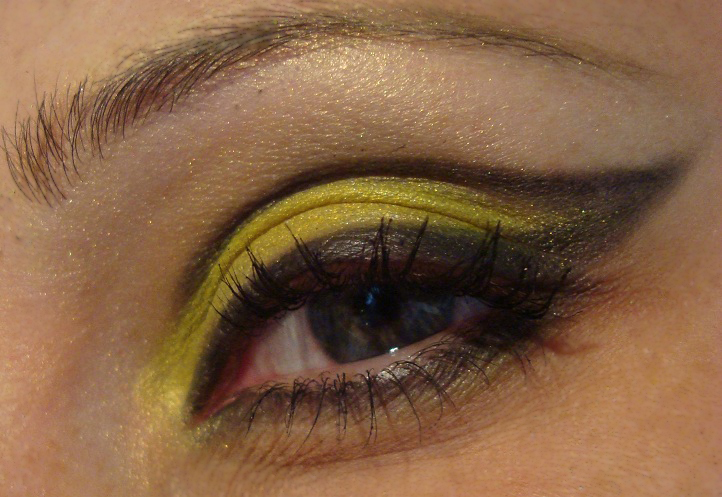 Solamente necesité un lápiz de ojos negro y una sombra amarilla muy pigmentada.El resto: Aplicar y difuminar!Saludos y gracias