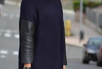 Nada de looks otoñales por ahora, asi que perfecto para lucir este jersey con mangas de polipiel de Zara, combinado con jeans de lunares de Pimkie, y mocasines de Zara también.