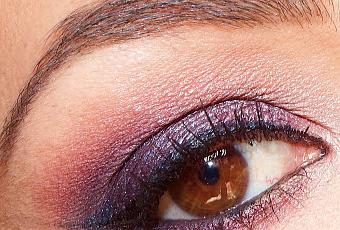 En la parte del ojo realicé un degradado de morado a rosita/malva, la sombra principal es "BAE" de ColourPop, de base berenjena y miles de destellos azules/platas/morados, ESPECTACULAR!!!!