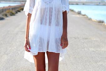 Y es que el otro día al volver de la playa de las Salinas, decidimos parar un momento para ver el paisaje, y el sitio donde nos hicimos las fotos de la postboda.Y como había una luz taaan bonita y llevábamos la cámara en el coche, decidimos hacer una sesión de fotos. Con mi pelo alborotado de playa, arena aun en los dedos y solo un poco de bálsamo en los labios. Y el resultado de las fotos la verdad es que me encanta ¡mi maridi sabe buscarme el lado bueno! Me encanta este vestido blanco transparente para ir a la playa, y debajo llevo el bikini blanco que os enseñé y tanto os gustó en el lookbook de bikinis. Con las gafas de sol que no dejo de ponerme y la corona de flores creo que se crea un look boho chic perfecto para después de la playa ¡espero que os guste!