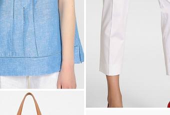 Blusa de lino de Sintesis: 59,95€Pantalón blanco de Antea: 29,95€Bolso Tote de Zara: 19,95€Sandalias de J. Crew: 162, 42€