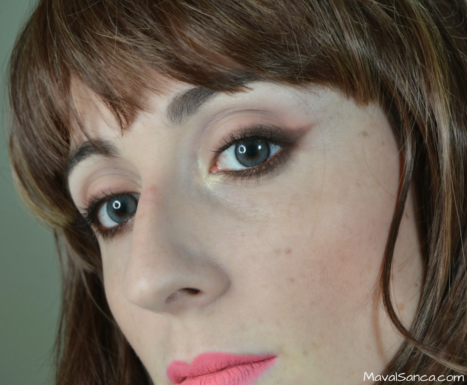 En la línea de agua inferior y en la linea inferior de pestañas llevo el delineador de KIKO difuminado y sobre él la sombra de ojos marrón rojizo de ETUDE HOUSE.