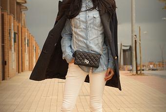 I am wearing a pair of white jeans, a denim shirt and also as the weather was bad I had to take my navy coat and my white beanie.