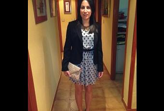 Para esta ocasión, me decanté por un vestido de topos de la marca Compañía Fantástica, una americana de H&M y unos básicos zapatos de salón en negro (nunca fallan). El bolso que llevé no es el que iba a llevar en un principio (lo olvidé en Madrid, soy un poco desastre a veces, jeje), así que tiré de lo que tenía en Huesca y termine utilizando un bolso de mano que compré en Primark el verano pasado. El anillo que llevo es de Swatch y el collar de Sfera.
