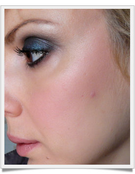 También os quería enseñar cómo queda el colorete en crema de MAC "Lady Blush" que me encanta y además dura un montón, en el hueso del pómulo puse los polvos minerales "By Candlelight".