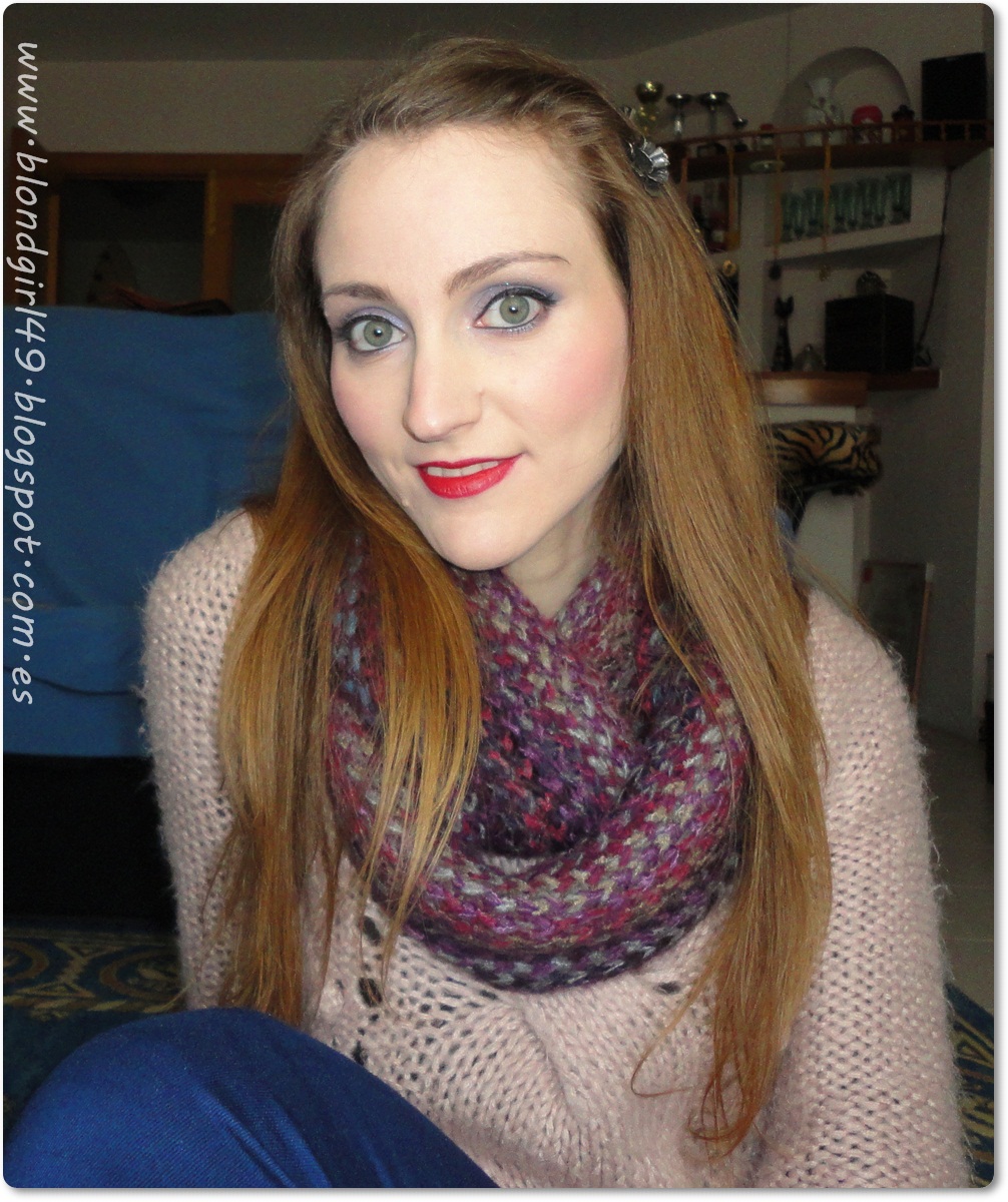Como veis es un look en tonos moraditos y azulados en los ojos y luego en los labios llevo nada mas y nada menos que el Russian Red de MAC^^PRODUCTOS EMPLEADOS:
