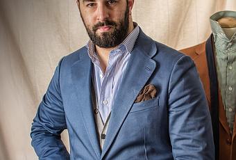 Sin duda la protagonista del look es esta chaqueta de algodón en tono azulón, confeccionada a medida por Tomblack, y de la que hablaremos con todo detalle en breve. Es una prenda polivalente y muy cómoda, perfecta para esos looks ambiguos entre sport y formal.