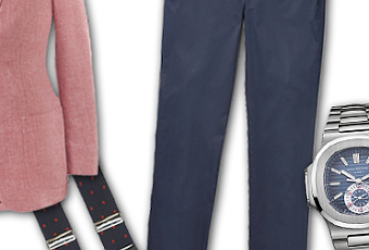 Los zapatos de hoy son unos mocasines en serraje tostado de Alden. Y en la muñeca portaremos un Nautilus de Patek Philippe.