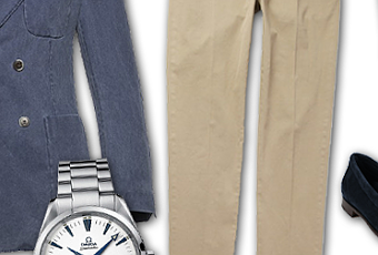 Con el pantalón no nos complicamos y elegimos unos chinos de corte recto y raya planchada en color beige, de Slowear. Y para sujetarlos en su sitio, y como toque muy sport, usaremos este cinturón de banda en unos colores muy náuticos de la nueva temporada de Harry´s 1982.