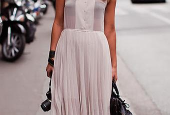La bloggera española Zina, nos muestra un look Black & White, ella optó por un vestido de gasa en color blanco, con detalles en transparencia en la parte superior y con tablas en la inferior. El cuello del vestido es negro, por lo que elige mocasines masculinos y un bolso Balenciaga en el mismo color.